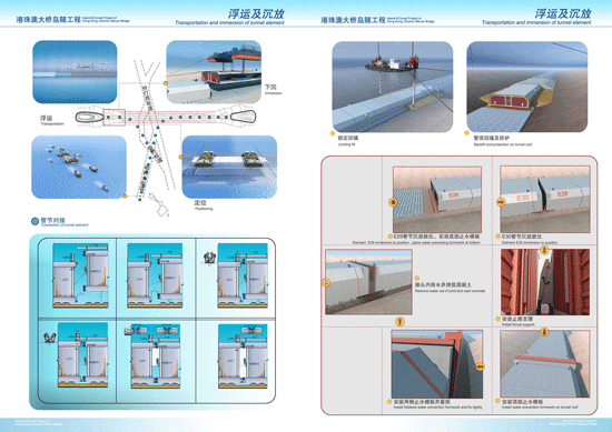 沉管浮云沉放對(duì)接過(guò)程示意圖(中交聯(lián)合體提供) 南方日?qǐng)?bào)訊(記者/向松陽(yáng) 高國(guó)輝 攝影/王榮 發(fā)自珠海)自首節(jié)沉管5月2日從珠海桂山島浮運(yùn)出塢,港珠澳大橋海底隧道首次“海底之吻”拉開(kāi)序幕。經(jīng)過(guò)4個(gè)晝夜的奮戰(zhàn),5日晚10點(diǎn)(可能推遲,具體時(shí)間到時(shí)我再和向松陽(yáng)核實(shí)),E1沉管成功實(shí)現(xiàn)與西人工島暗埋段的對(duì)接。這是國(guó)內(nèi)首個(gè)實(shí)現(xiàn)外海深水安裝的沉管工程,也是迄今為止世界上規(guī)模最大、最具挑戰(zhàn)的工程。 5日下午,記者在西人工島島頭看到,完成系泊和絞移的E1沉管停留在離暗埋段5米的位置。據(jù)悉,首節(jié)沉管于3日凌晨在8艘拖輪的拖運(yùn)下抵達(dá)西人工島島頭,并于4日早上6點(diǎn)多完成絞移。不過(guò),在4日進(jìn)行的沉放實(shí)驗(yàn)中,因島頭的水流復(fù)雜形成漩渦帶來(lái)泥沙淤積,海底基床出現(xiàn)了一定高差偏差。“最高達(dá)到5-10公分,尾部泥沙較少,只高出1公分左右。”島隧工程項(xiàng)目副總工程師尹海卿說(shuō),這也是“沉管下不去”的原因所在。 這種狀況出乎工程師們的預(yù)料,據(jù)尹海卿介紹,考慮到島頭水流復(fù)雜,他們于4月30日進(jìn)行過(guò)測(cè)試,當(dāng)時(shí)的結(jié)果顯示滿(mǎn)足施工要求。5月4日完成檢查并進(jìn)行分析后,施工人員抽空沉管內(nèi)的水,讓沉管重新浮上來(lái),之后10多名潛水員們開(kāi)始了泥沙清理工作。“因?yàn)殄^和纜繩都弄好了,沉管整個(gè)退出去的話要花10個(gè)小時(shí),只能由潛水員去做。”至昨日下午2點(diǎn),全部泥沙清理工作已經(jīng)完成,這一過(guò)程中,平均每個(gè)潛水員要在水下作業(yè)2-3個(gè)小時(shí)。 昨日下午4點(diǎn)許,施工人員通過(guò)沉放駁上的操縱系統(tǒng),往沉管內(nèi)的壓載水箱注水,E1沉管開(kāi)始緩慢下沉,并引導(dǎo)沉管前端的導(dǎo)向桿落入暗埋段上的導(dǎo)向托架內(nèi)。整個(gè)過(guò)程需要保持管體2.996%的縱坡,最后再向前平移,通過(guò)吊繩使管節(jié)以勻速、平穩(wěn)的速度落在碎石墊層上,完成“著床”。 當(dāng)沉管下沉到基床后,通過(guò)拉合千斤頂,使得兩個(gè)管節(jié)基本對(duì)準(zhǔn)位置,這時(shí)要將對(duì)接處的海水抽掉。“到晚上8點(diǎn)潮水最高的時(shí)候,是進(jìn)行水力壓接的最佳時(shí)機(jī)。”尹海卿說(shuō),高潮水對(duì)管節(jié)壓載的質(zhì)量更好,“就好像把蓋子蓋得更緊一樣。”據(jù)了解,在兩個(gè)管節(jié)的橫截面周?chē)惭b了巨大的橡膠止水帶,理論上的GINA止水帶壓縮量是10幾公分。潛水員水下檢查確認(rèn)后,向沉管水箱加入壓載,使其負(fù)浮力達(dá)到沉管重量的5%,保持沉管一定的抗浮安全系數(shù),最后打開(kāi)沉管間的入孔門(mén)進(jìn)行測(cè)量。 尹海卿介紹,沉管對(duì)接要控制3個(gè)誤差,“沉管對(duì)接的精確度要求非常高,兩邊橫向偏差要控制在在2厘米之內(nèi),縱向偏差3.5厘米之內(nèi),軸線偏差控制在5厘米之內(nèi)。” 至晚上10時(shí)(可能推遲),經(jīng)過(guò)海水水壓對(duì)接后,首節(jié)沉管順利完成了對(duì)接。 沉管對(duì)接關(guān)鍵步驟: 1.沉管出塢 2.沉管浮運(yùn) 3.系泊 4.絞移 5.管節(jié)沉放 6.千斤頂拉合 7.高潮位水力壓接 8.貫通測(cè)量 9.管內(nèi)精調(diào) 10.安裝船撤離 11.鎖定回填 |